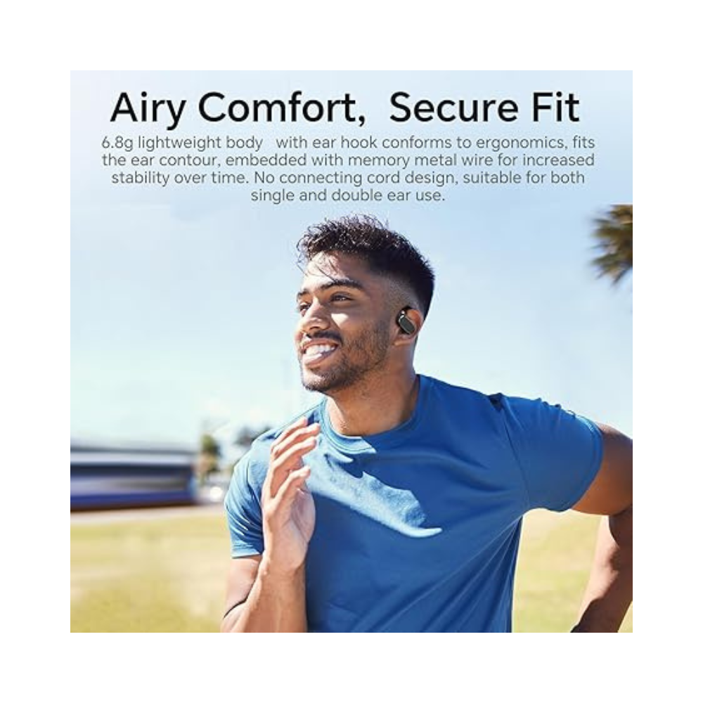 Open-Ear Comfort – Lightweight design that rests securely without blocking the ears, reducing pressure and ensuring all-day comfort.